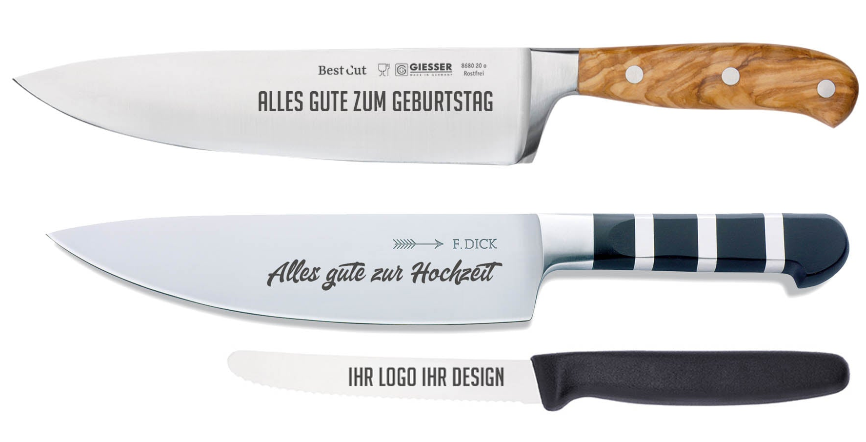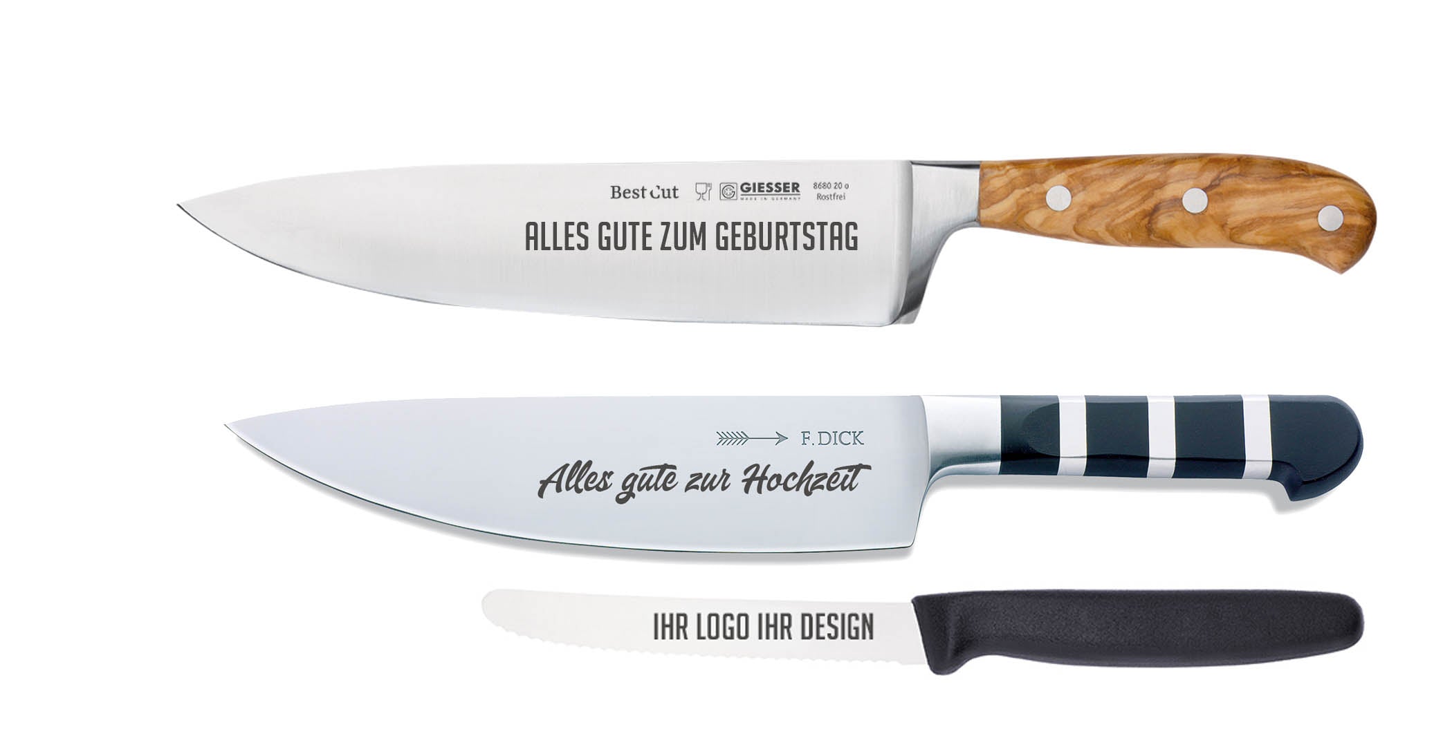 ob Kochmesser, Jagdmesser, Taschenmesser oder Sammlerstücke – wir gravieren auf