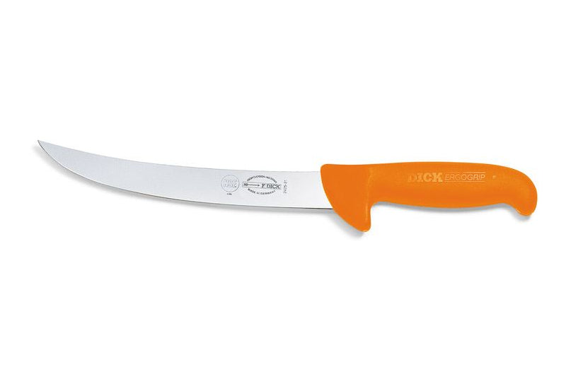 Dick Ergogrip Zerlegemesser 21cm, steif, gebogen 82425-21-53orange KunststoffgriffProduktinformationen• Klingenlänge: 21cm• Klingenform: gebogen• Griff: Kunststoff• Grifffarbe: orange